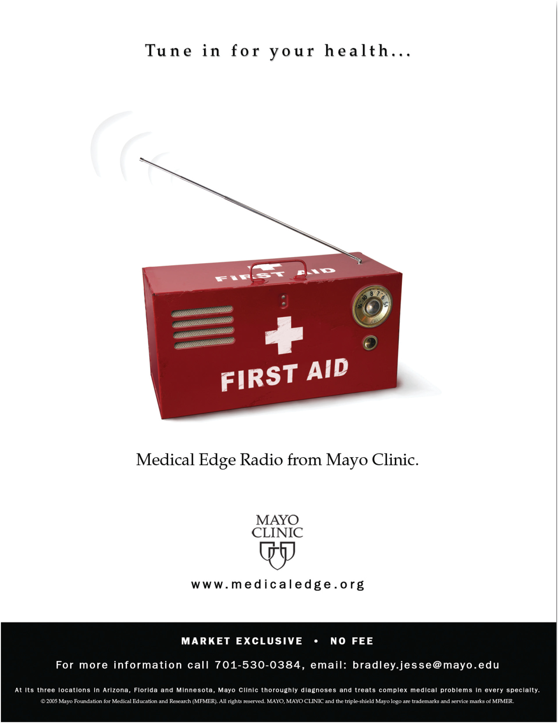 Ideation • Art Direction • Copy Writing • Design: External magazine advertising campaign for Medical Edge TV and Radio from Mayo Clinic. Ads were placed in tv/radio industry publications.